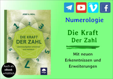 Die Kraft der Zahlen im Hier und JetztJosef A. MollDieKraftderZahlenfürdasHierundJetzt kannausdemGeburtsdatumerrechnet werden.AuchdasDatumvonheuteunddie Jarheszahllässtvieleserkennen!Diese Zahlenzeigenauf,welcheZählenkräfte wannzuwirkenbeginnenundwelche Zahlenkräfteneuhinzukommenaufunserem LebenswegundwelcheQualitätenwirvon denZahlenkräftenbenutendürfen.Daher gibtesaucheinezeitlicheAbfolge,wowir MenschenunsmitdemBewusstwerdender Zahlenkräftedaraufeinstellenkönnen.Jeder MenscheigentsichBegabungen,Talente und Geschicke an und reift an sich selbst. AuchwerdenindenZahlenkräftenfürdasHierundJetztdieEinflüsseunseresUmfeldesspürbar,indie wirvielleichtgestoßenwerden,wennwirvomWegabkommenoderwirwerdeninjeneRichtung beeinflusst,umunsereverborgenenBegabungen,TalenteundFähigkeitenentdeckendürfen,umdiese in unserem Leben zu vervollständigen. AlldieseErkenntnisselassenunseinenpositivenunderfolgreichenWeggehenunddürfenunsere Erdenaufgabeerfüllen.AufdemrichtigenWegerlangenwirunsereZufriedenheit,Balance,Glück, Gesundheit, etc… und wachsen an uns selbst. Einzelsitzungen: nach Terminabsprache ca. 1,5 Stunden, Tel. 0660-55 300 10Buch:Josef A. Moll: „Numerologie – Lernen und Anwenden“, ISBN 978-3-99025-055-6Josef A. Moll: „Arbeitsbuch zur Numerologie Lernen & Anwenden“, ISBN 978-3-99025-379-3Josef A. Moll: „Numerologie – Pentagramm“, ISBN 978-3-99025-193-5 Josef A. Moll: Arbeitsbuch zur Numerologie des Pentagramms, ISBN: 978-3-99025-380-9Josef A. Moll: „Die Kraft der Zahlen“, ISBN 978-3-99025-309-0Internet:► shop.mit-natur.at► www.mit-natur.at► www.numerologie.cc► www.diekraftderzahlen.eu► www.diekraftderzahl.eu